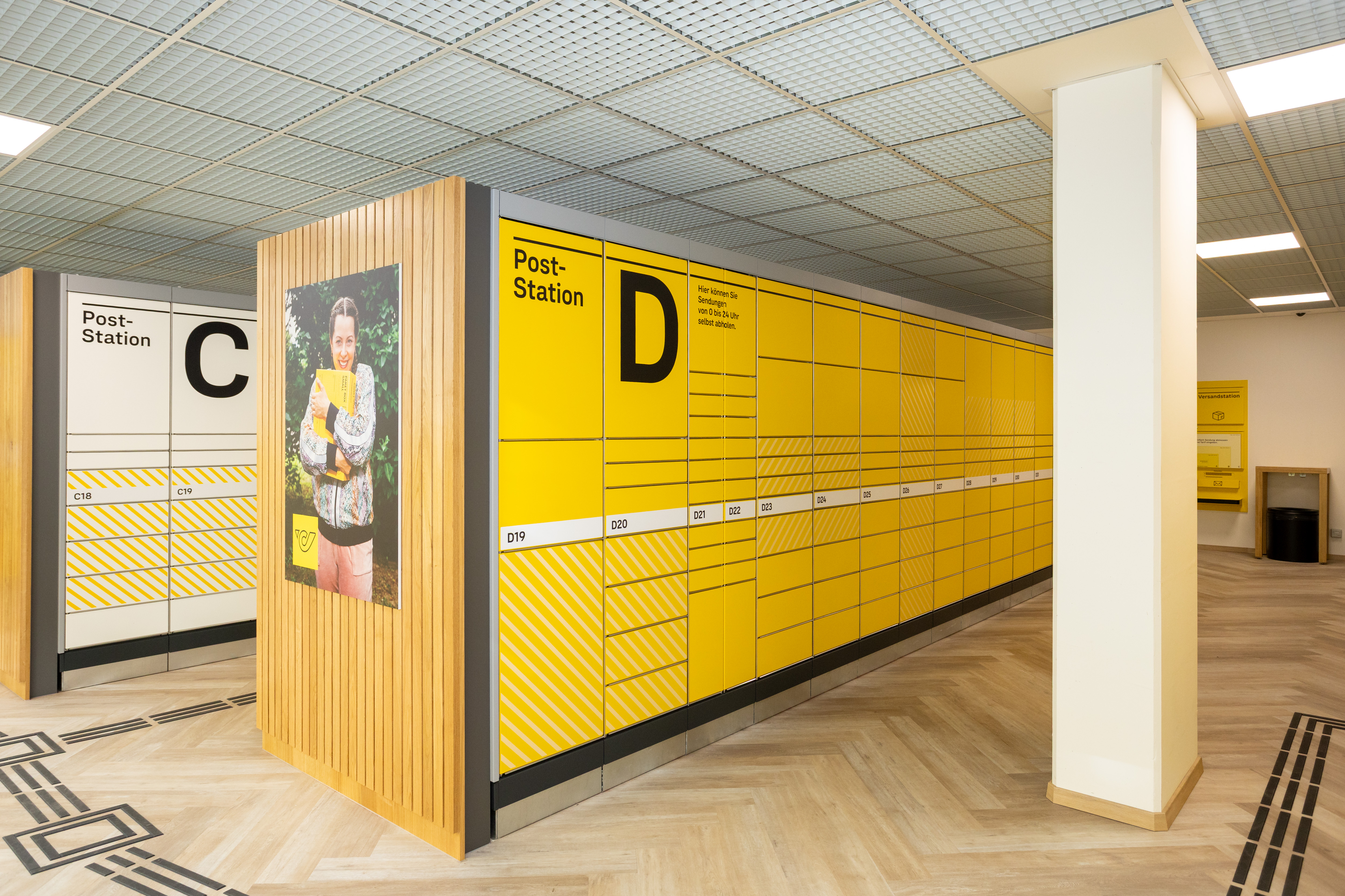 Die neue SB-Filiale erstreckt sich über eine Fläche von über 210 m² und bietet Platz für eine große Poststation mit mehr als 1.300 Abholfächern. Zwei Versandstationen ermöglichen zudem das Frankieren und Versenden von Paketen oder Retouren. Die neue SB-Filiale ist hell und modern gestaltet, zur nachhaltigen Ausstattung zählen auch Verkleidungselemente aus Holz, die zu einer angenehmen Atmosphäre beitragen.